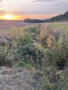 Le démar­rage est à plat. Dès le départ un chemin vous fait tra­vers­er un étab­lisse­ment agri­cole, puis un chemin enher­bé qui longe le ru de Boutel­li­er.